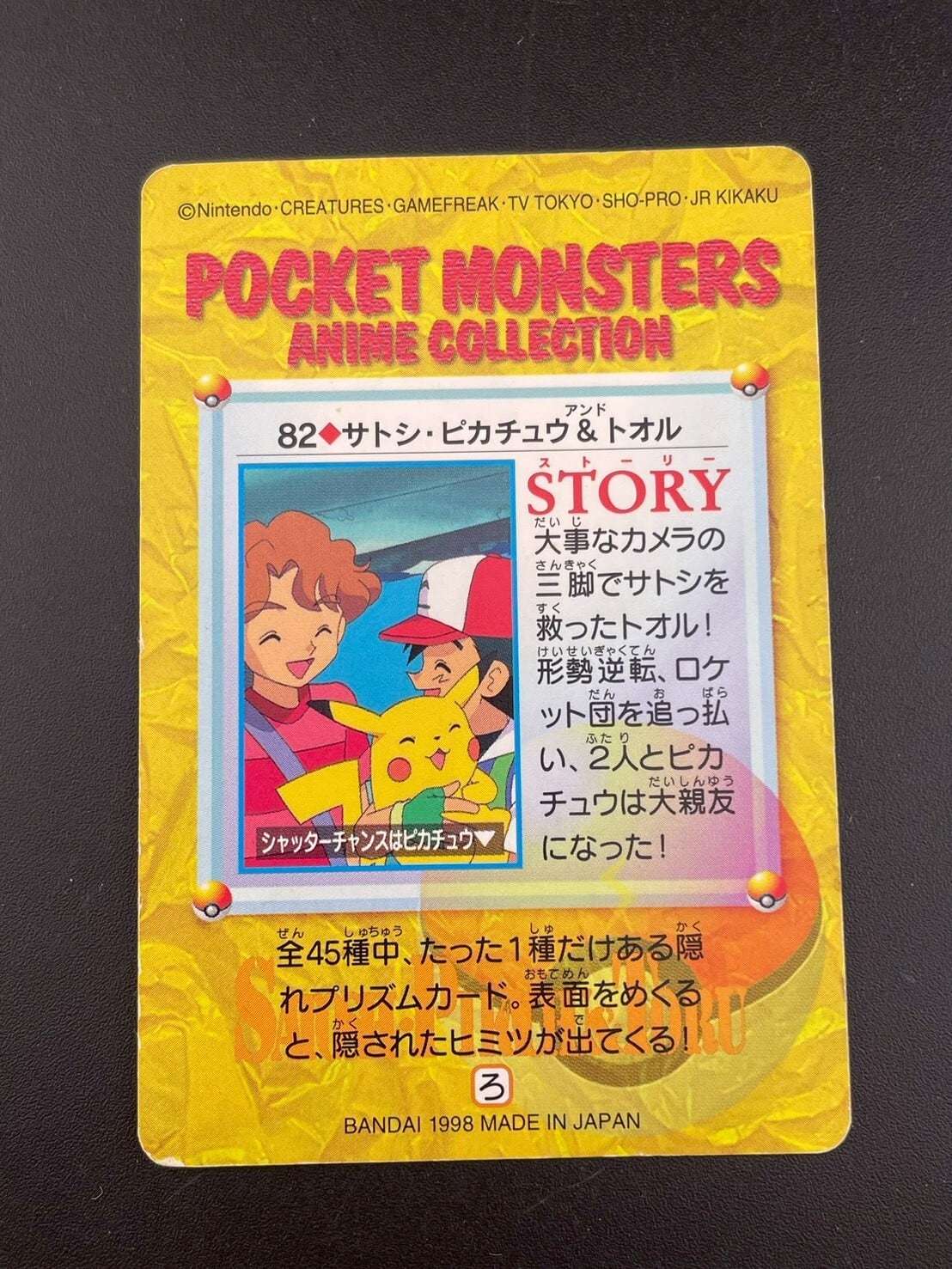 【中古品】 82.サトシ・ピカチュウ&トオル BANDAI 1998 カードダス ポケモンカード